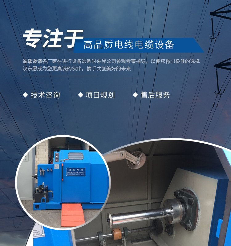 常州漢東機械始創于2006年,是集電線電纜機械設計、開發(fā)、制造、安裝、調試為一體化的高科技企業。本公司自開業以來,積極引進日本,歐美等國外電線電纜設備之先進技術,先后成功推出了達到行業先進水平的電線電纜設備,主要產品有擠出、繞包、束線、成纜等電線電纜固定設備。在提供系統設備的同時,還向客戶提供售前技術咨詢、項目規(guī)劃、以及售后服務。我公司本著“以人為本、科技先導、用戶為上”的宗旨,為客戶提供牢靠的產品與省心的服務。漢東愿成為您更真誠的伙伴,攜手共創美好的未來!